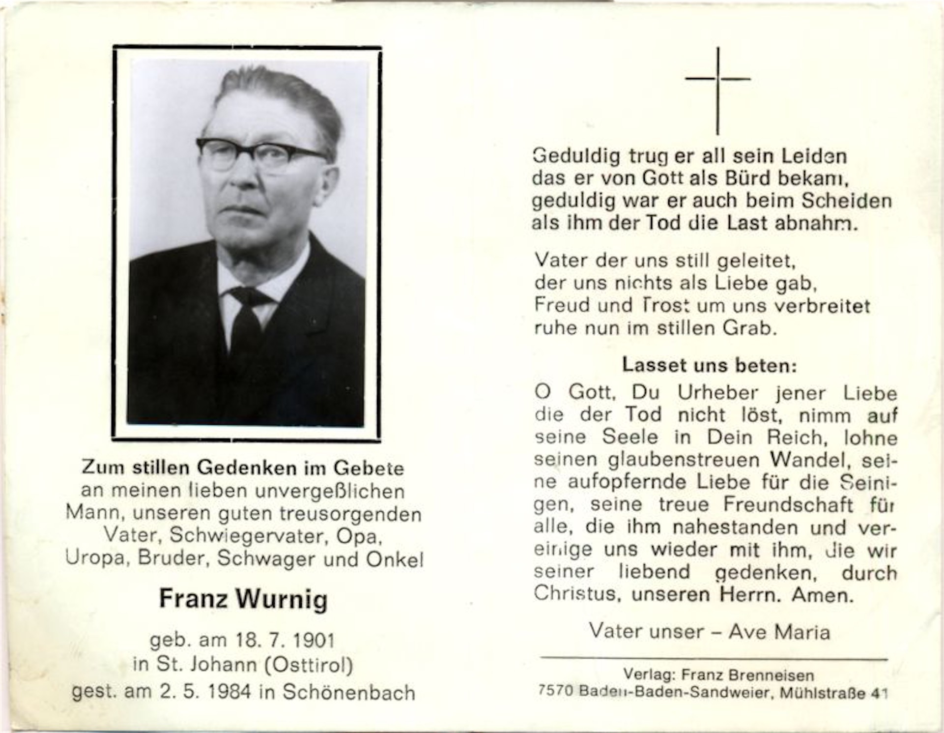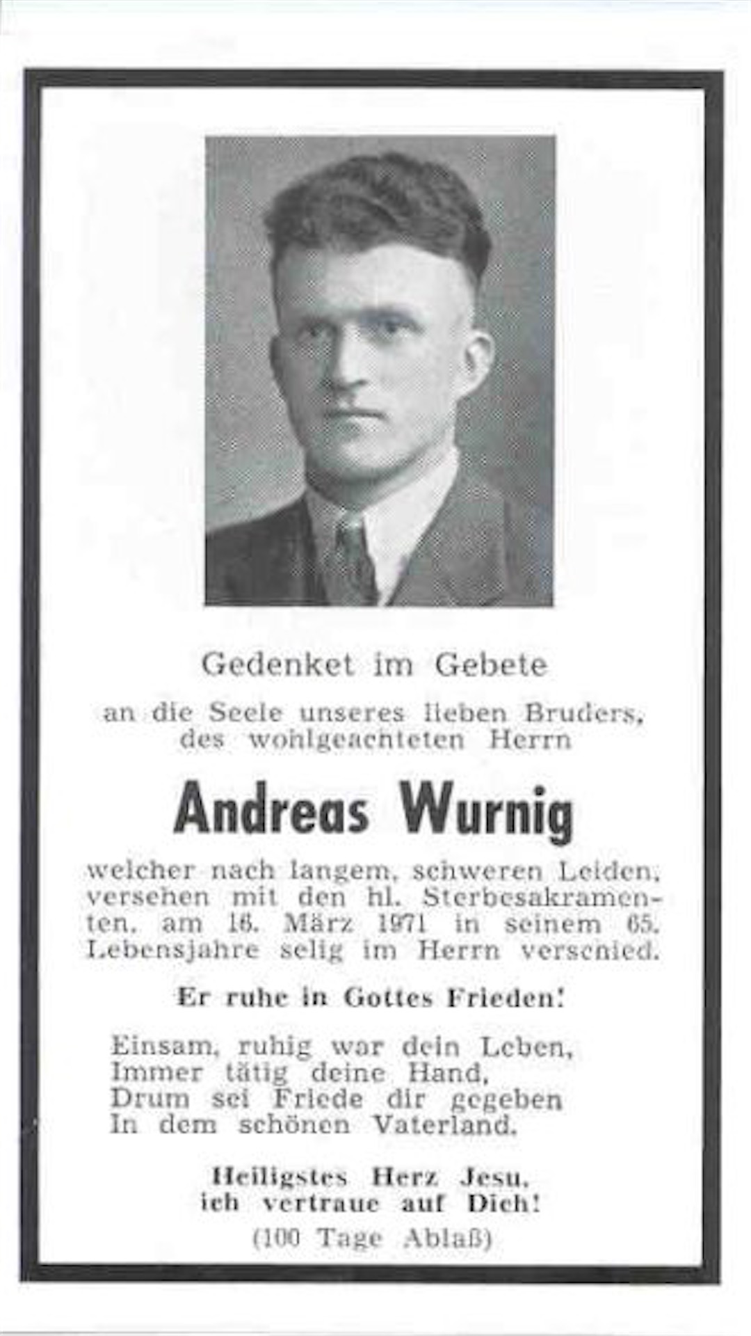 Bruder Andreas kam 1906 auf die Welt und starb 65-jährig im Jahr 1971.
