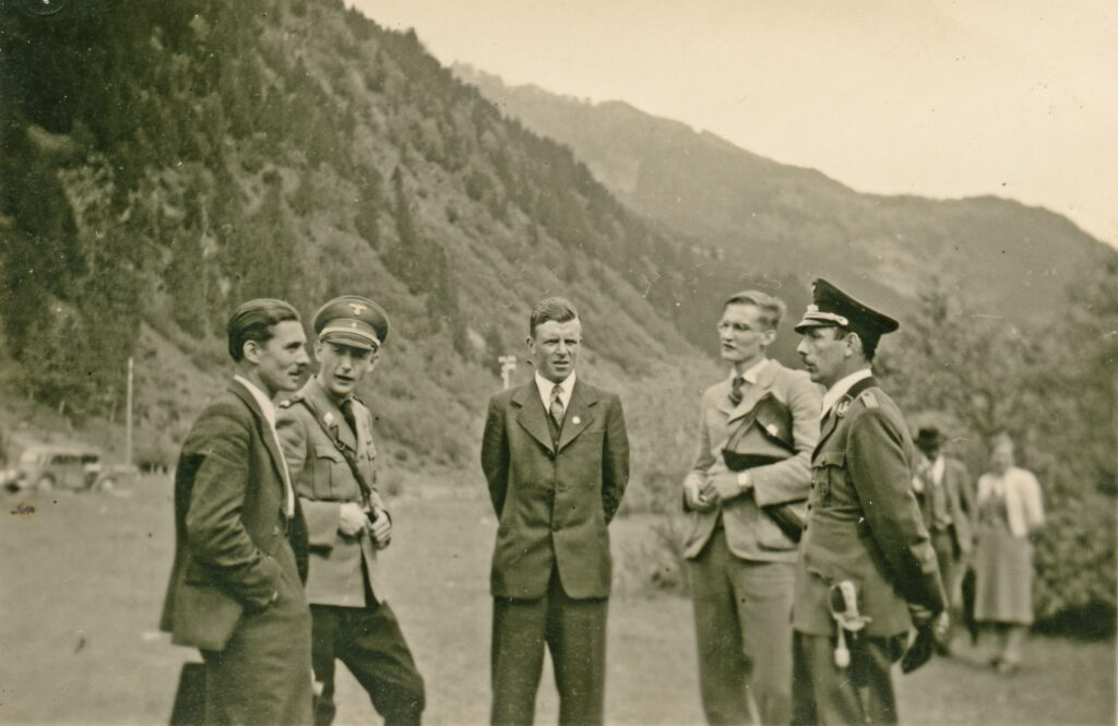 Das Bild zeigt Josef Wurnig im Kreise von Parteifunktionären und Lehrpersonen in Tratte/Ainet (Fotograf: J. Obbrugger; Sammlung L. Gomig; Tiroler Archiv für photographische Dokumentation und Kunst)