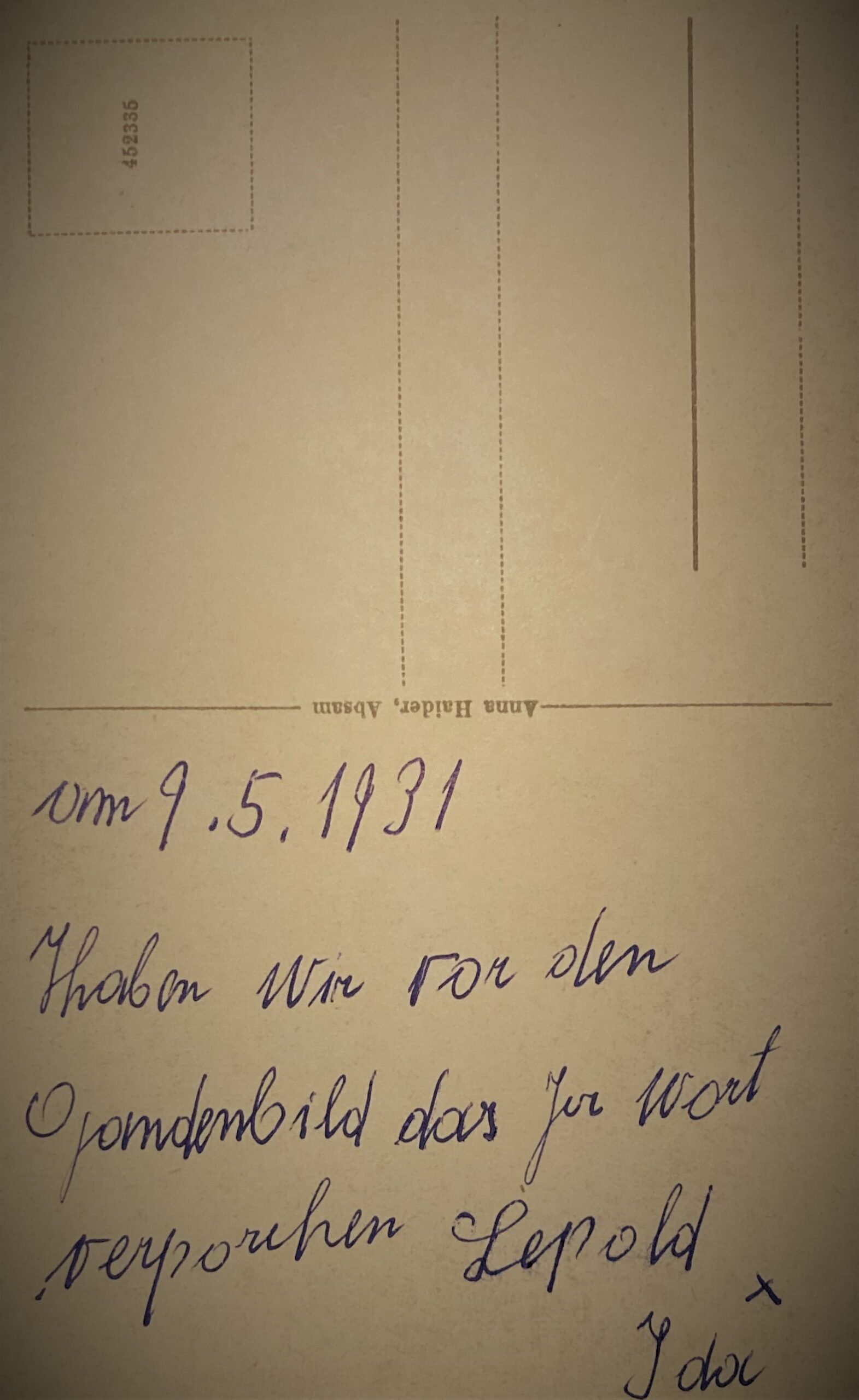 Ihr späterer Ehemann Leopold war zeitgleich bis Juni 1931 Portier und Hausbursche. Sie lernten sich wohl an dieser Arbeitsstelle kennen. Auf einer Ansichtskarte in den Unterlagen von Ida Jungwirth findet sich der Hinweis auf die Verlobung am 9. Mai 1931 im Tiroler Absam.