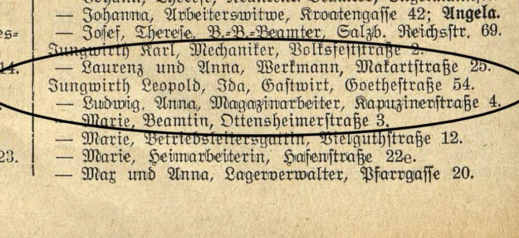 Der Familienname „Wurnig“ kommt vermutlich vom slowenischen „Vrbnik“, zu Deutsch „Weidner“ (zu slow. vrba „Weide(nbaum)“). Der komplette Stammbaum von Ida Jungwirth kann hier nachgeblättert werden.