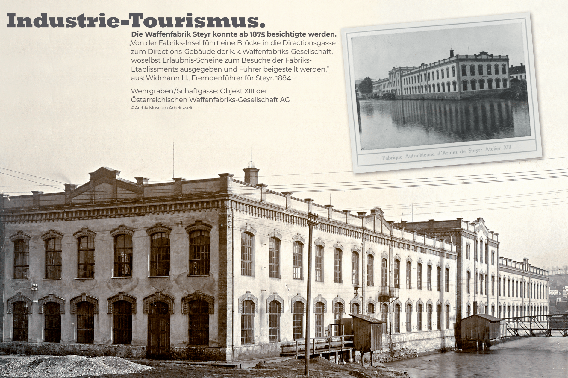 „Industrie-Tourismus“ – schon ab 1875 lockte die Waffenfabrik Steyr Besucher an – mit offiziellen Erlaubnisscheinen und Führungen durch die Produktionshallen