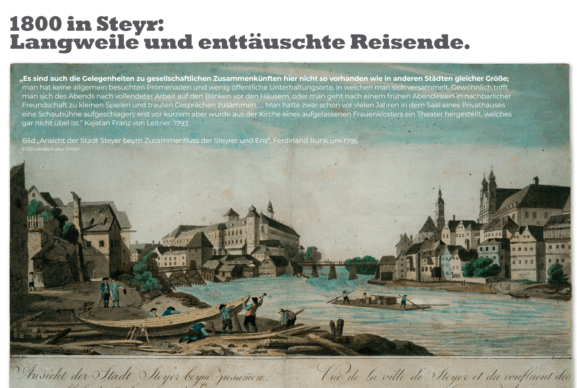 „1800 in Steyr„: Langweile und enttäuschte Reisende“ – ein Reisebericht über fehlende Promenaden und Unterhaltung und den Beginn des Theaters im aufgelassenen Kloster